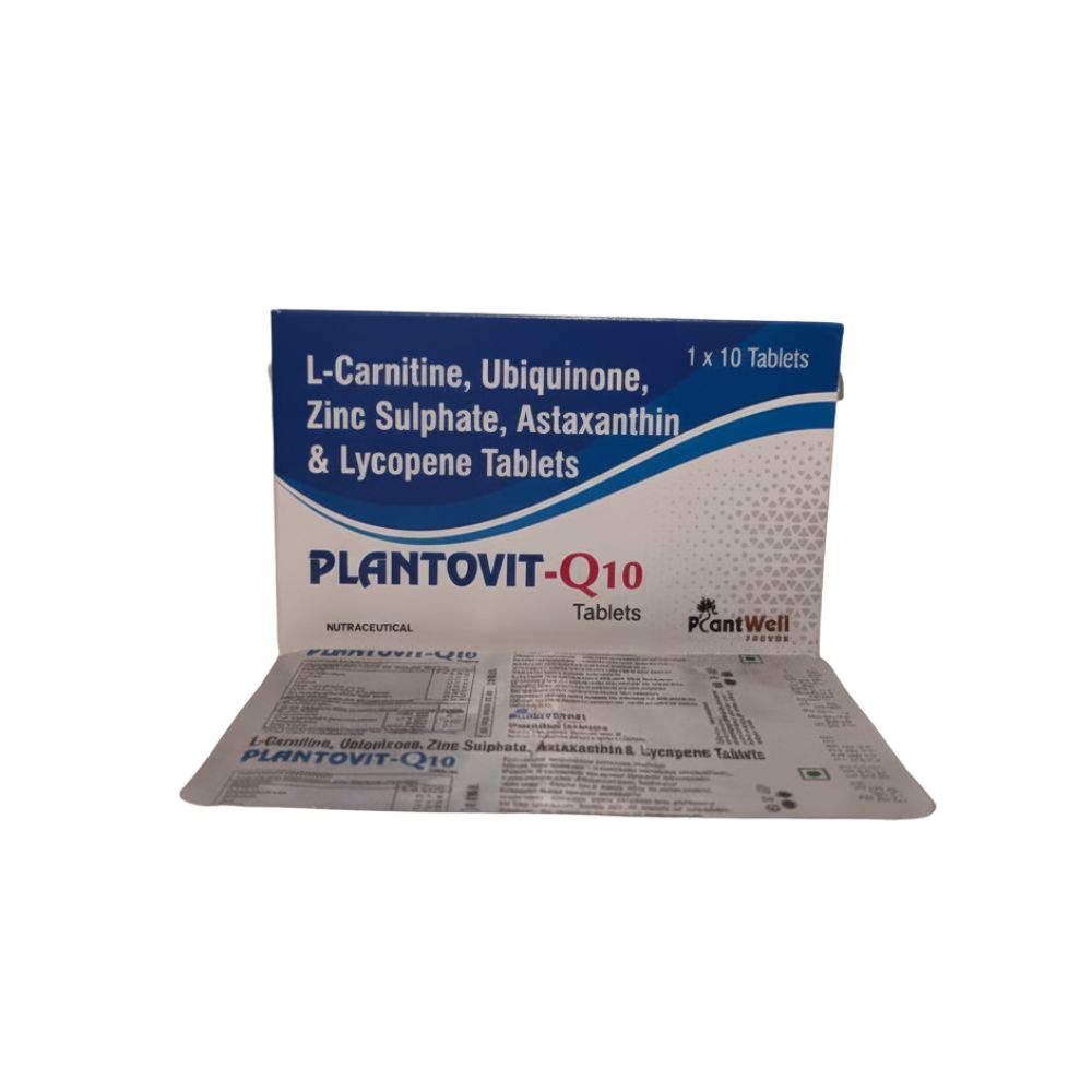PLANTOVIT-Q10: L-Carnitine, Ubiquinone, Zinc Sulphate, Astaxanthin & Lycopene Tablets Supports Energy, Immunity & Antioxidant Defense
